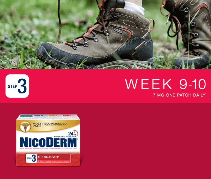 For weeks 9 and 10, use NICODERM® Step 3 to further reduce and eliminate your need for nicotine.